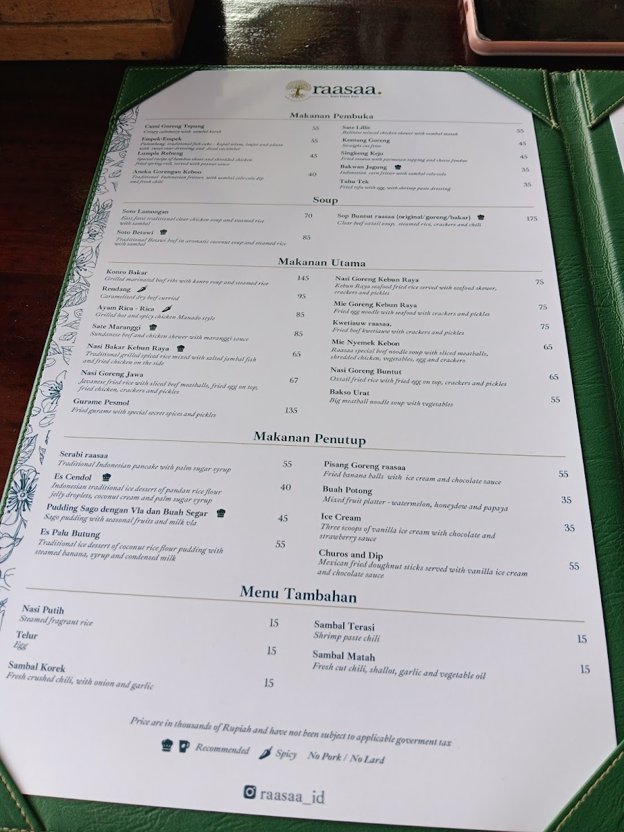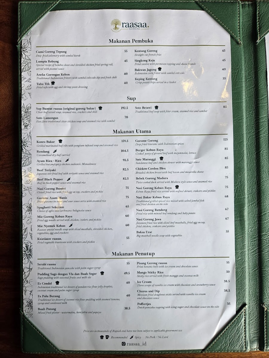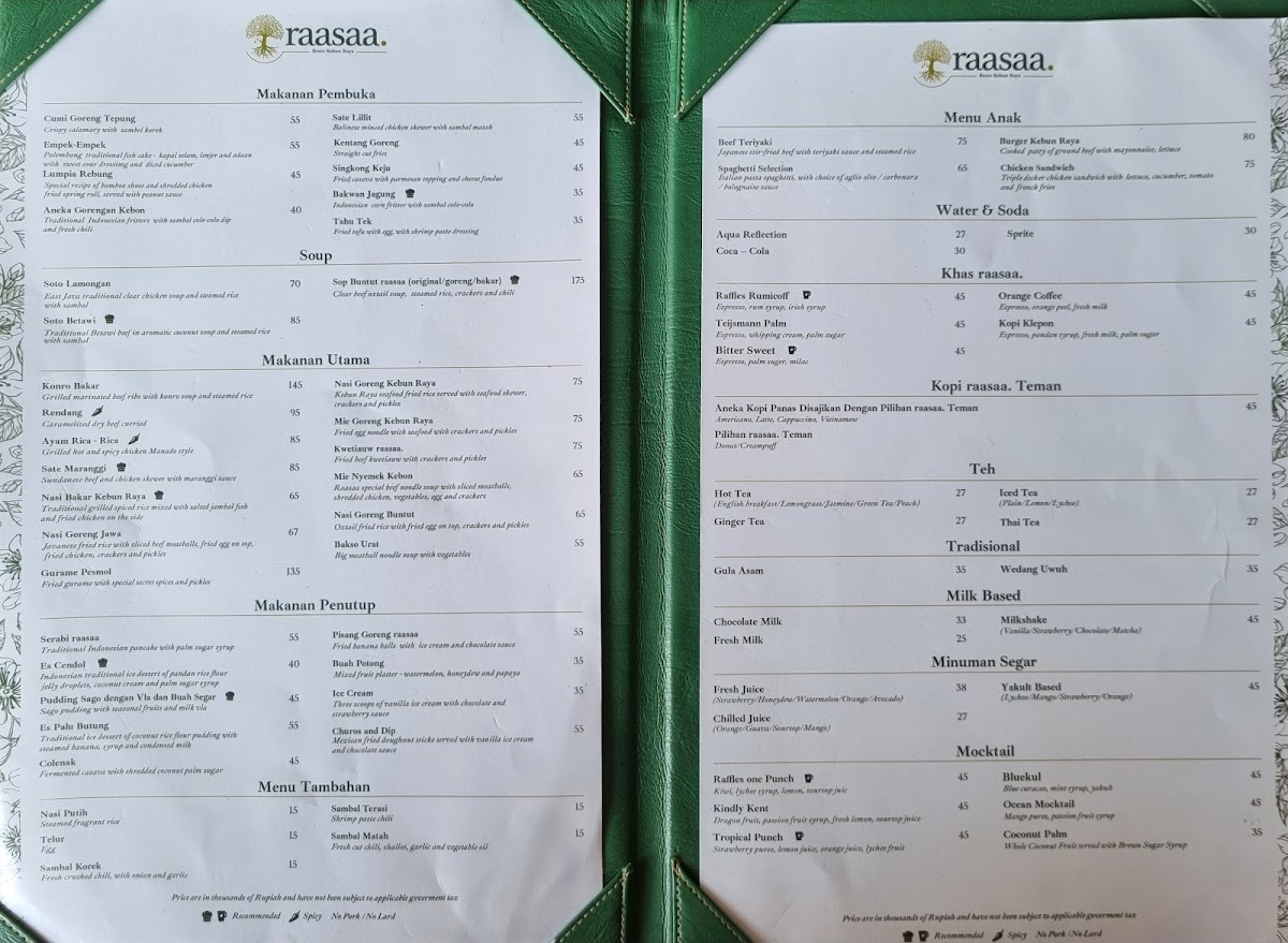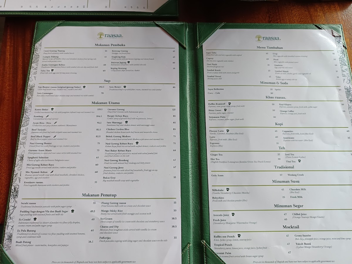 Introducing Resto raasaa, a delightful culinary gem located within the scenic Bogor Botanical Gardens. This charming eatery not only offers a diverse menu but also a breathtaking view that enhances your dining experience. Customers rave about the nasi goreng kebon raya and soto betawi, both praised for their generous portions and vibrant flavors.